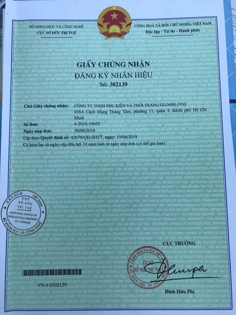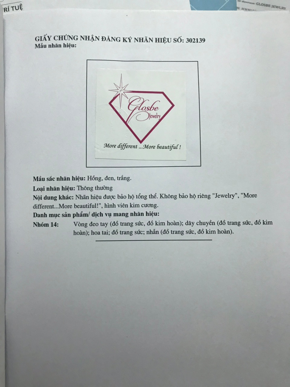 Giấy chứng nhận đăng ký nhãn hiệu - Glosbe Jewelry