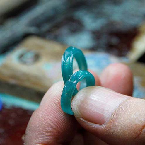 Từ mô hình 3D, mẫu nhẫn sẽ được xuất ra và được khắc trên sáp cứng. Sáp có màu xanh ngọc hoặc xanh lá cây sậm màu. Các mẫu sáp có thể làm thủ công bằng tay hoặc máy.